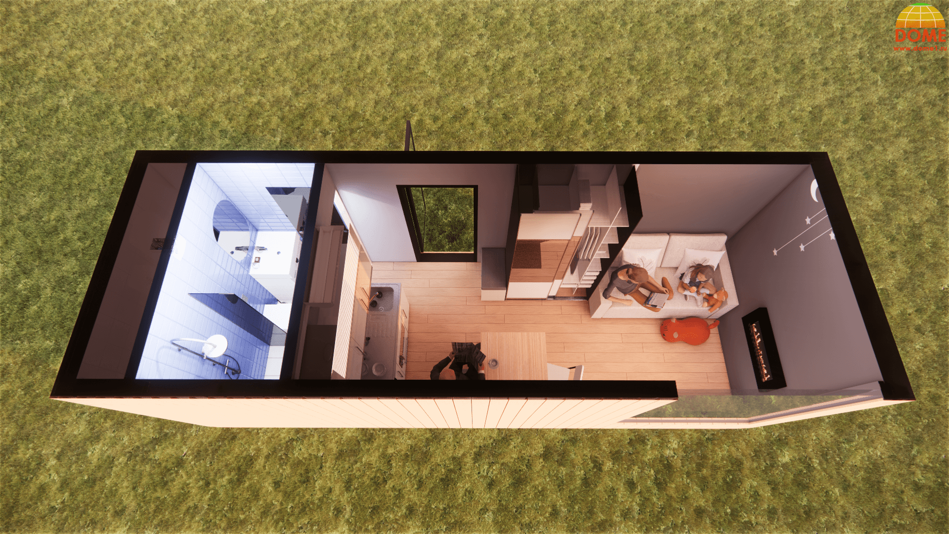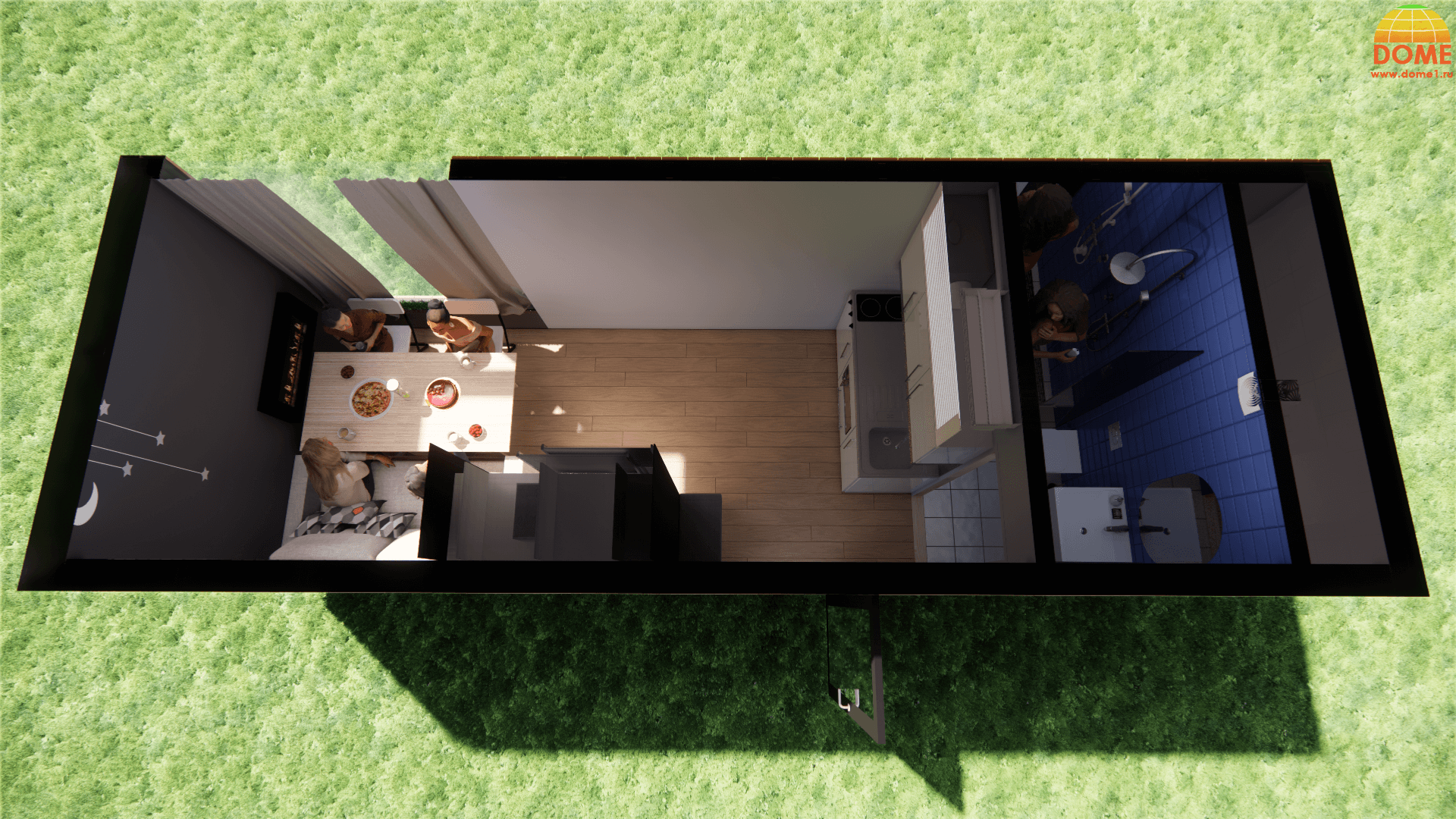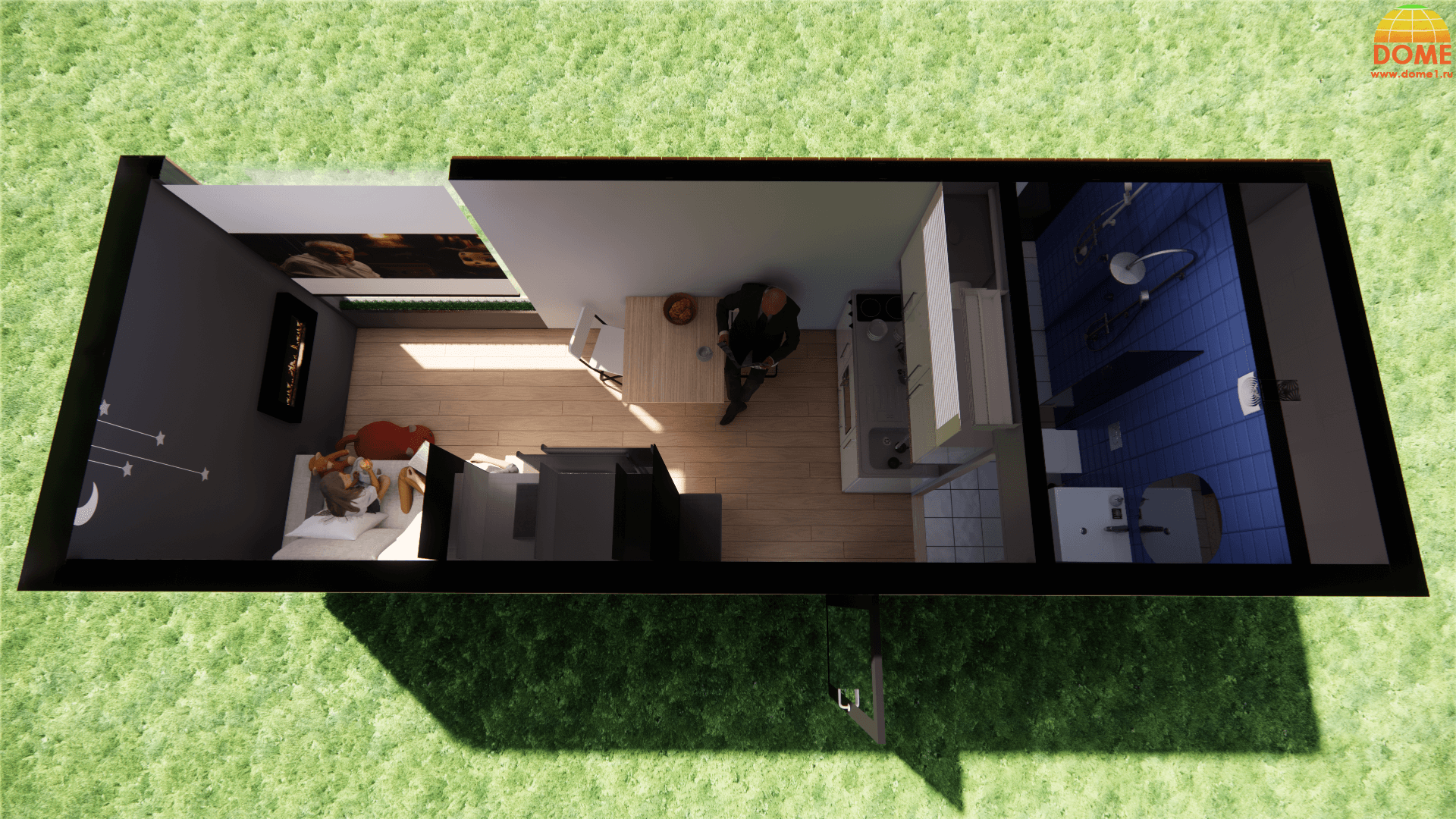 1 спальня: Оптимально для одного человека или пары. Такой дом может включать в себя небольшую гостиную, кухню и санузел.