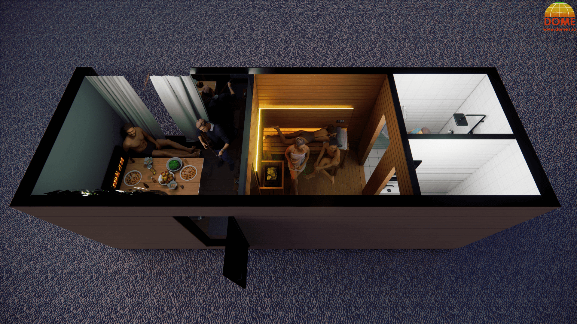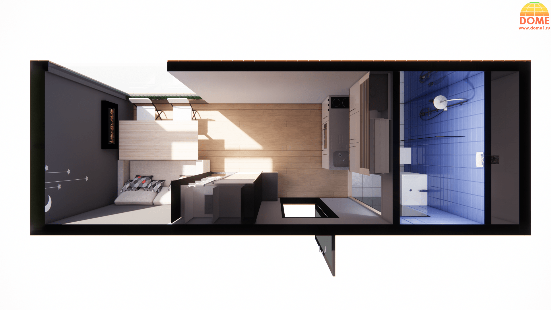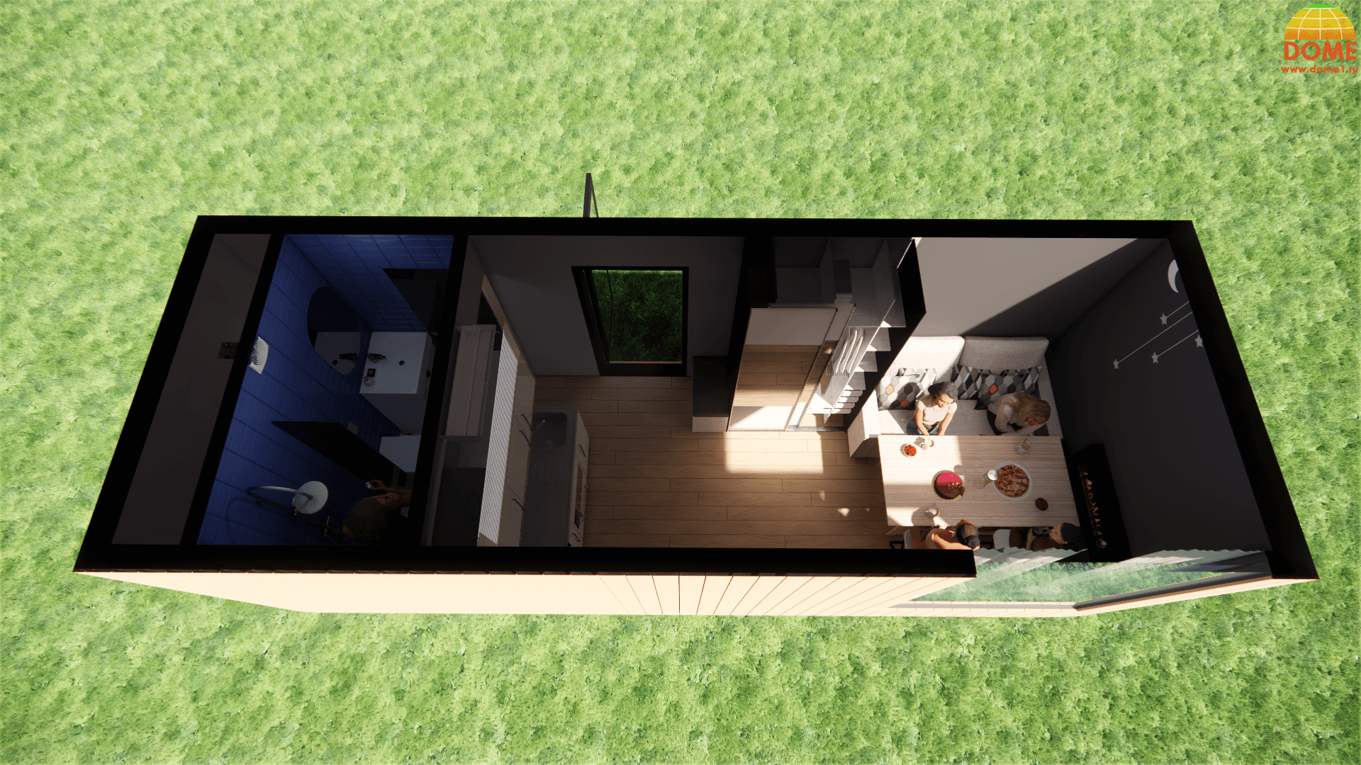 1 спальня: Оптимально для одного человека или пары. Такой дом может включать в себя небольшую гостиную, кухню и санузел.